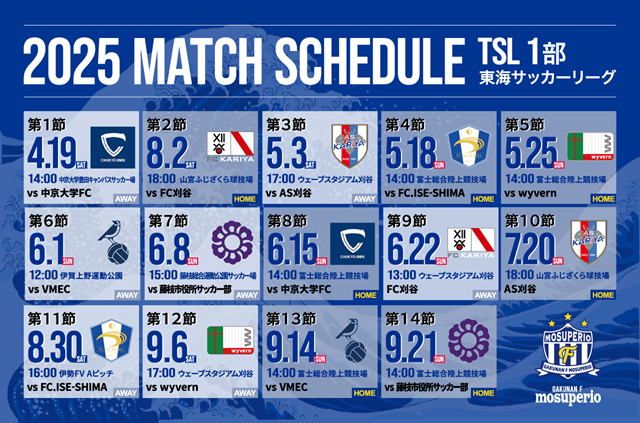 2025年度静岡県サッカー選手権大会 7回戦 202504/06Sun 草薙球技場 02 - 00 矢崎バレンテFC 2024/10/06 2024年度東海社会人サッカーリーグ1部 岳南Fモスペリオ 02-00 藤枝市役所サッカー部 2024/09/28 2024年度東海社会人サッカーリーグ1部 岳南Fモスペリオ 00-01 中京大学FC